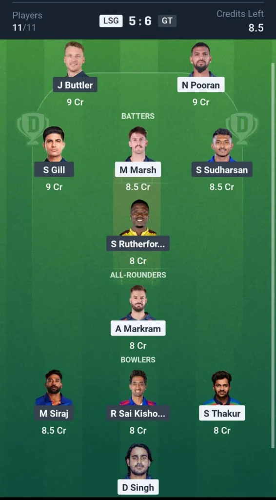 LSG vs GT: Dream 11 Top Picks, Captains, and Teams