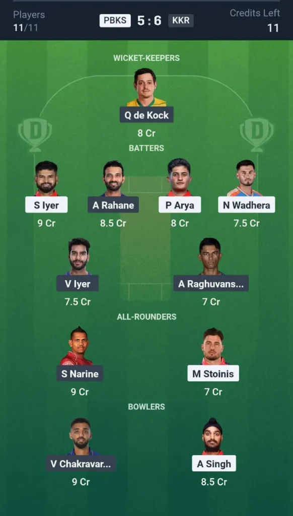 PBKS vs KKR: Dream 11 Top Picks, Captains, and Teams