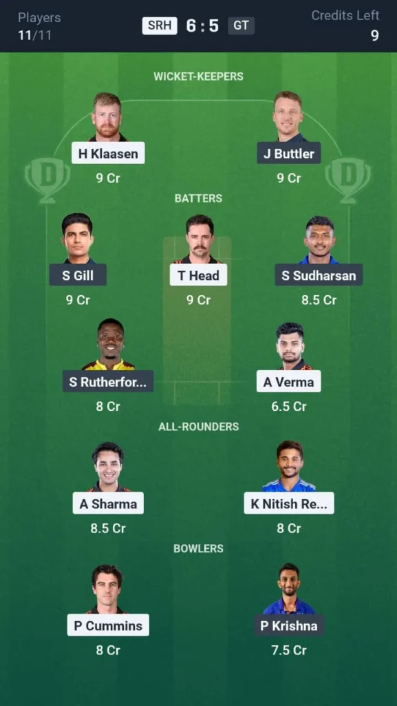SRH vs GT: Dream 11 Top Picks, Captains, and Teams
